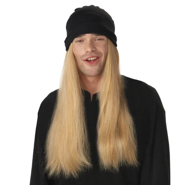 Blond Brown Slacker Wig with black beanie