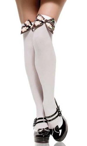 Smiffys Stockings With Satin Bow White-Hot Pink Stockings & Tights