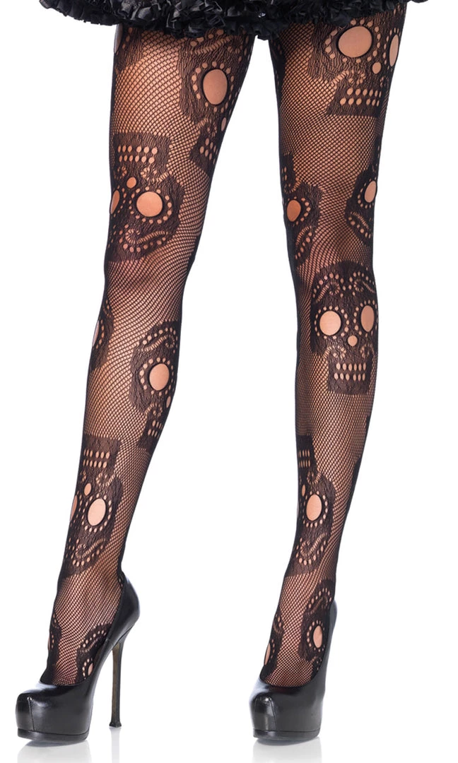 Sugar Skull Net Tights Black