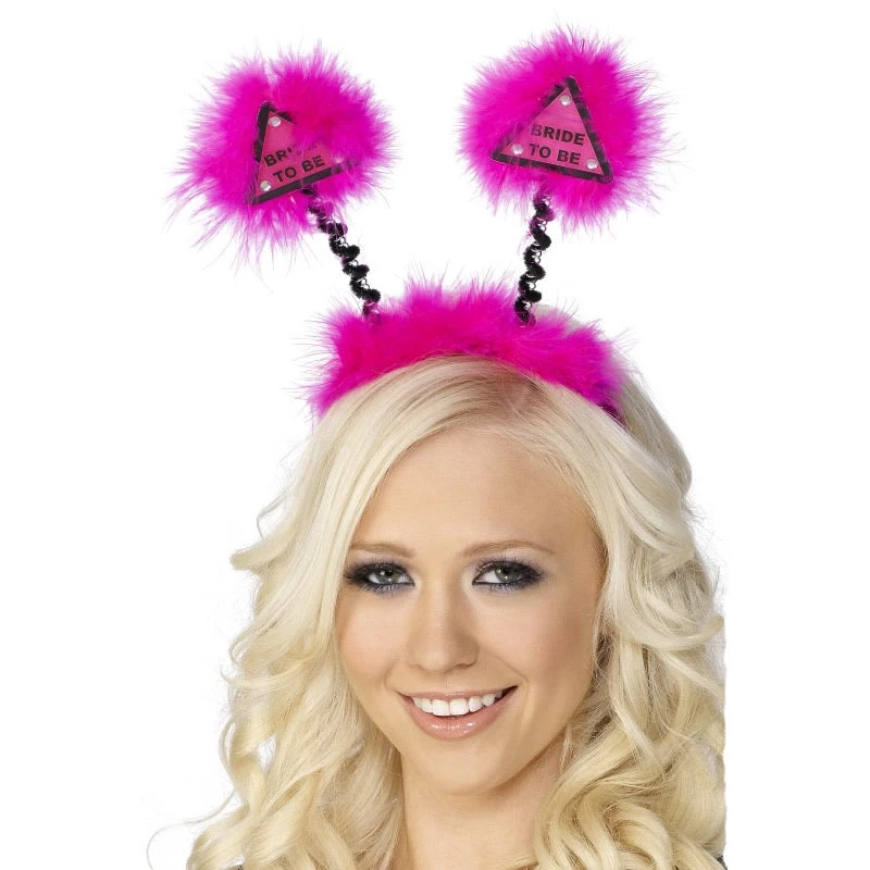 Ladies Fuchsia Bride to Be Head Boppers with Marabou Trim.