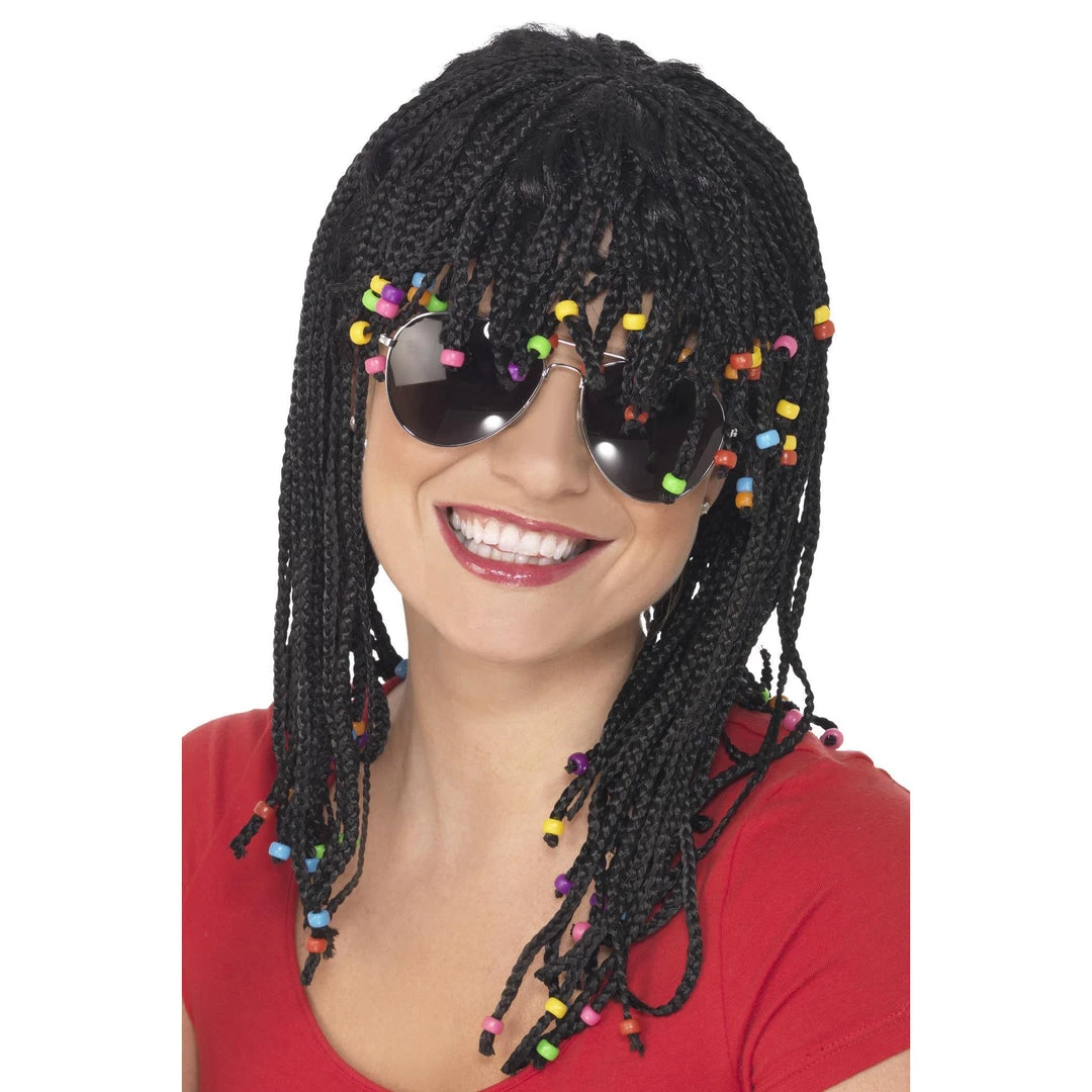 80s Braided and Beaded Unisex Wig, Black