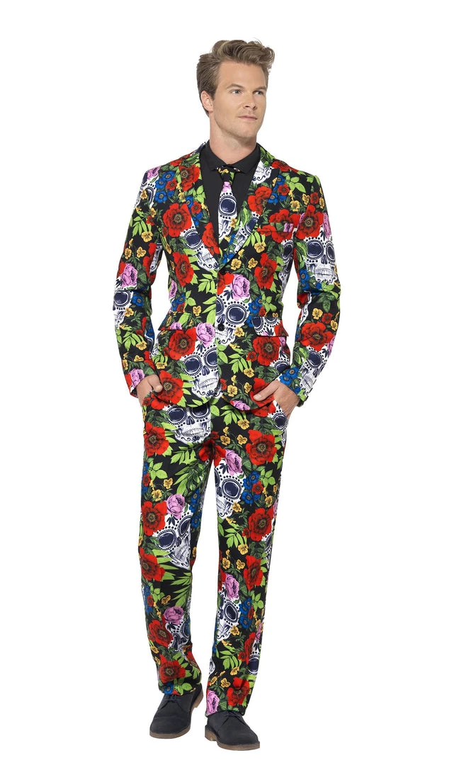 You won’t need to worry about finding a suitable tie to pair with this suit as a matching Day of the Dead Print one has been included.