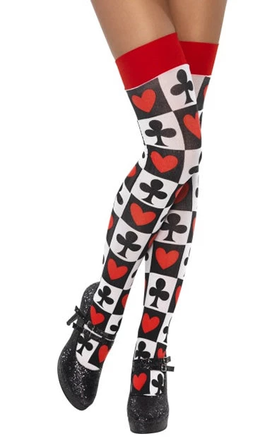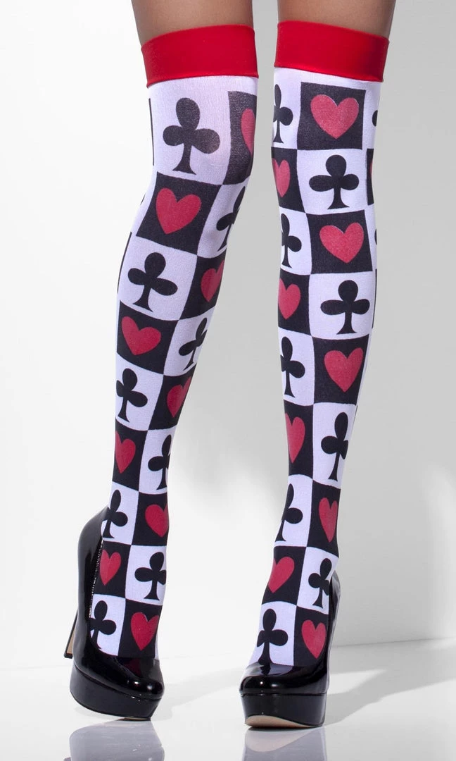 Deck of Cards Stockings, Checkered Black and White with Poker Suits