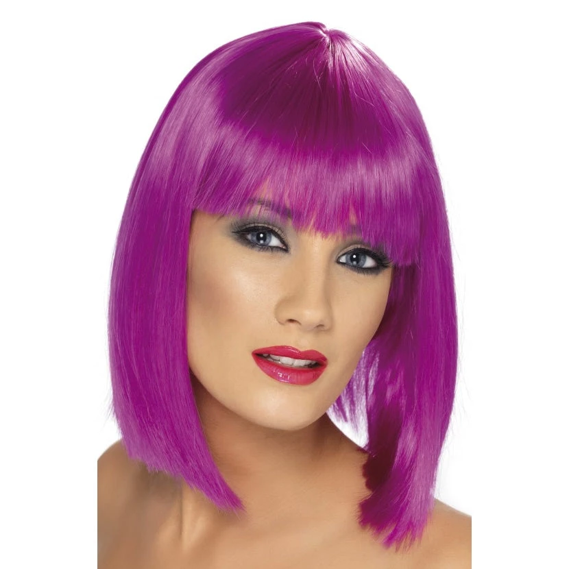 Neon Purple Glam Wig, Short, Blunt with Fringe.