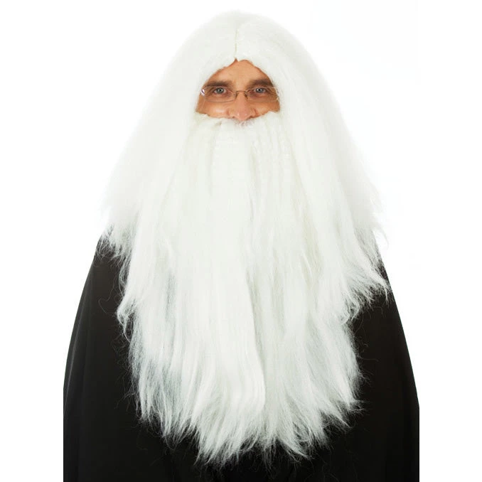 Merlin Wizard Wig and Beard, White