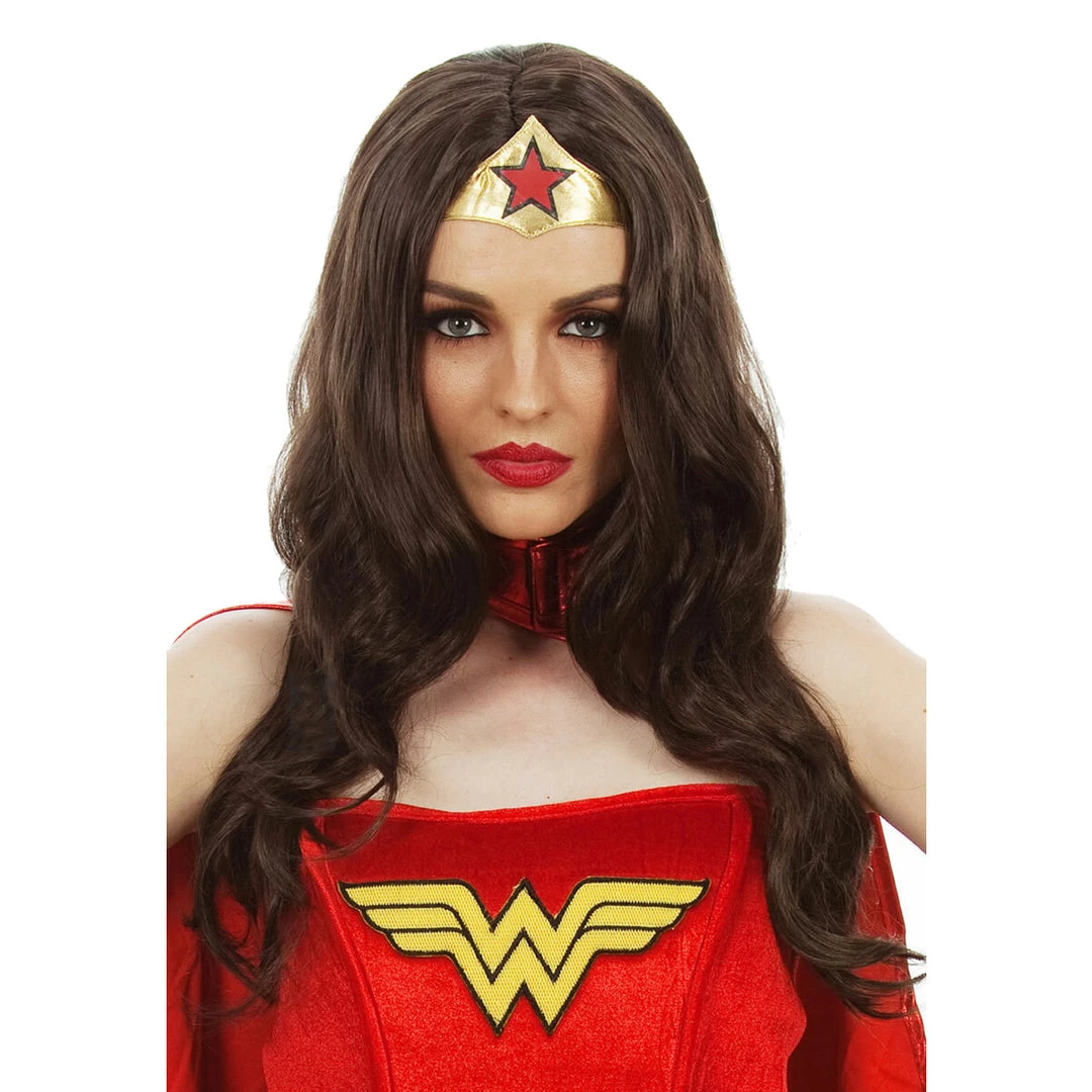 Super Heroine Wonder Woman Wig Dark Brown